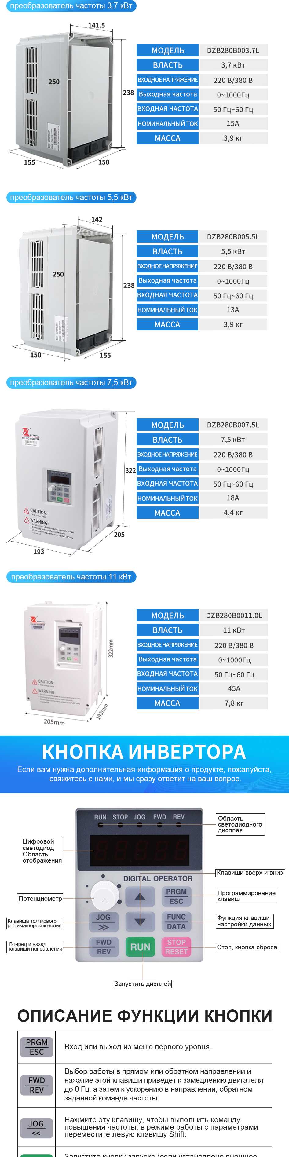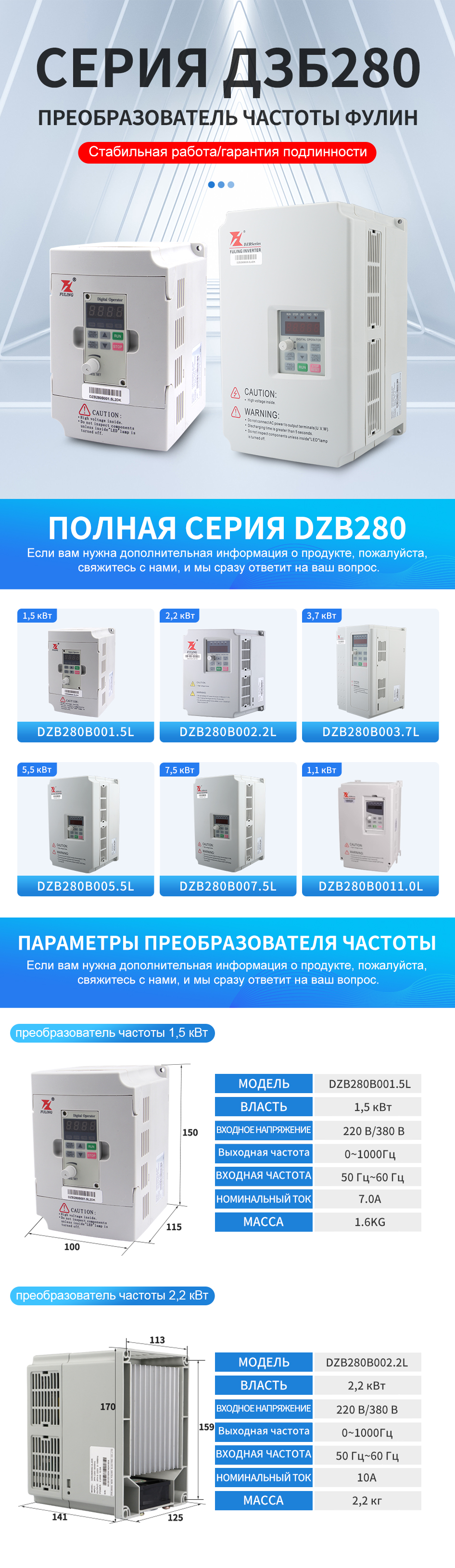 Инвертор серии Fuling DZB280 1,5–11 кВт