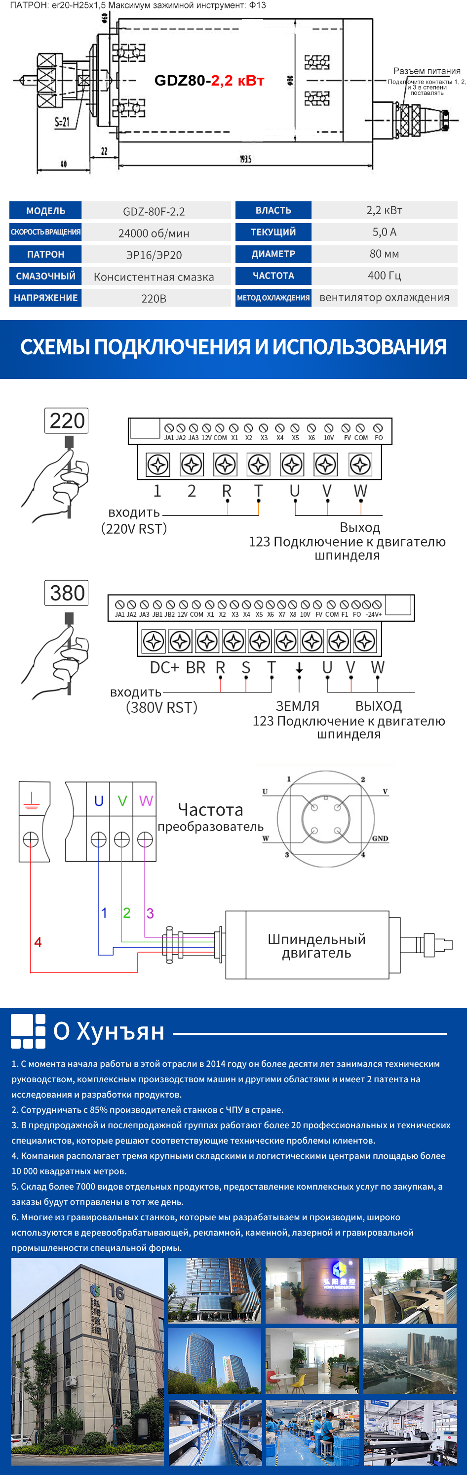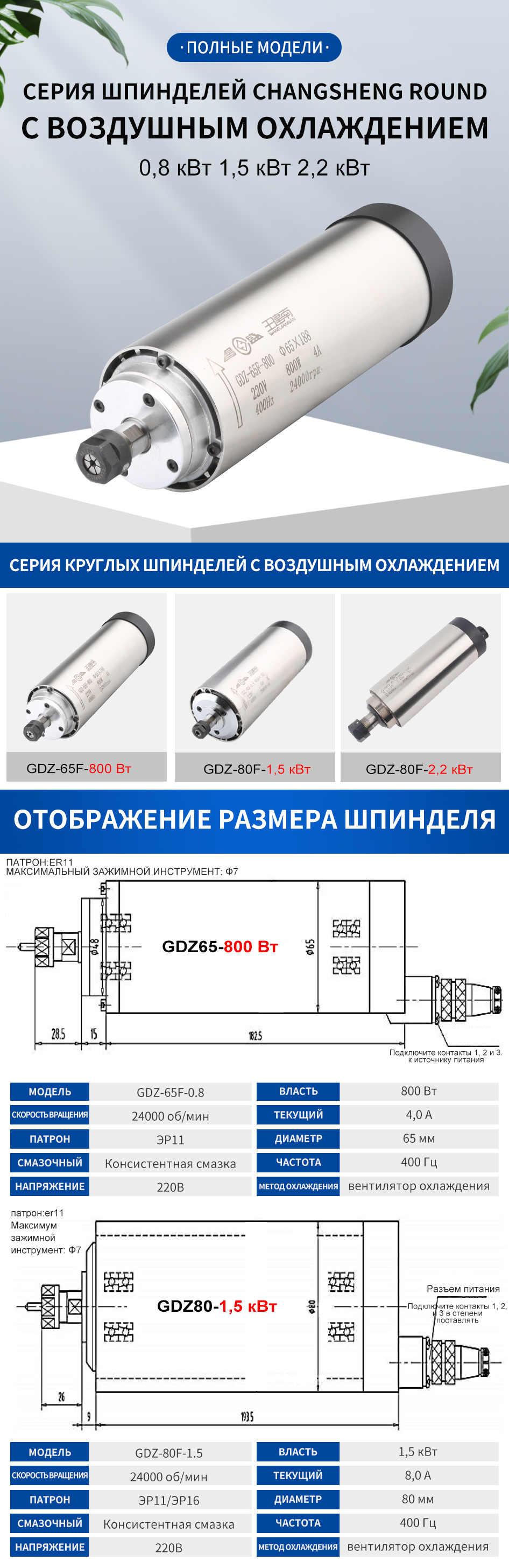 Круглый высокоскоростной электрический шпиндель Changsheng с воздушным охлаждением, двигатель шпинде