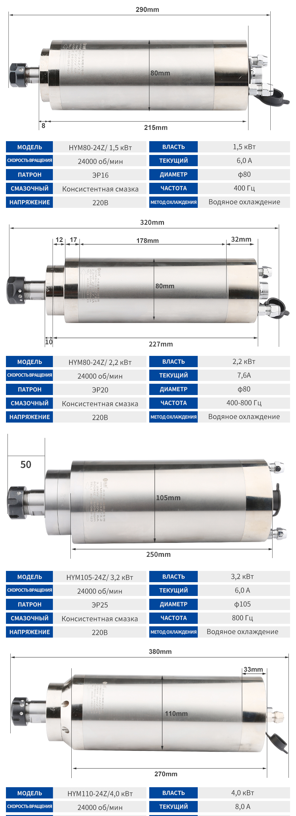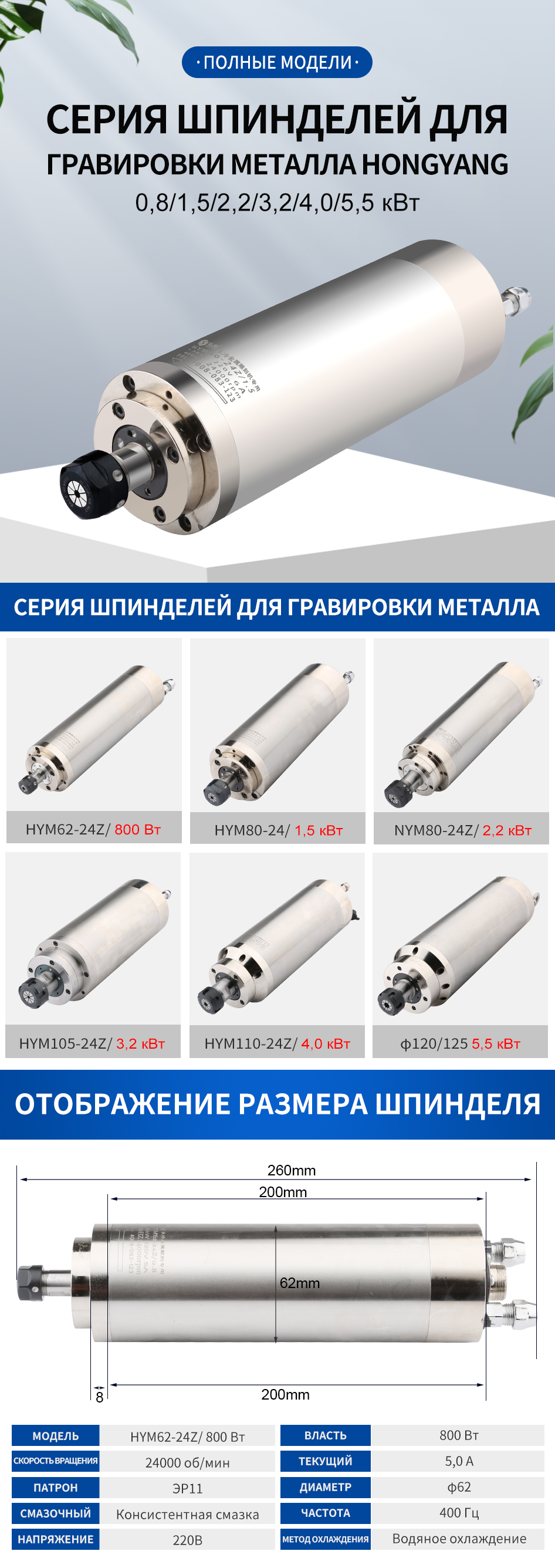 Серия шпинделей металлических форм Hongyang 0,8-5,5 кВт