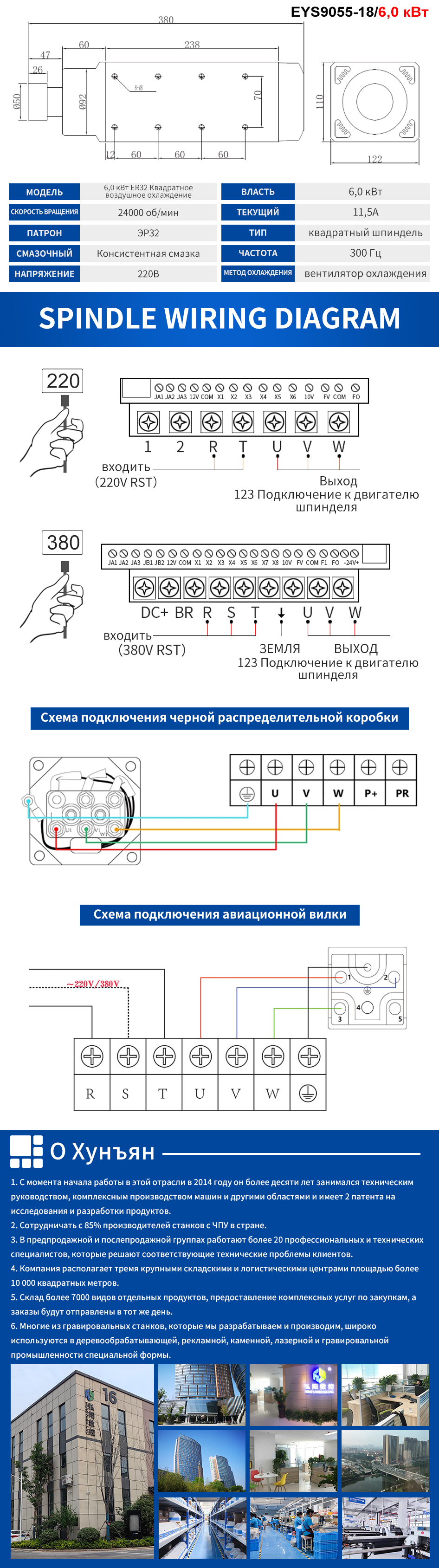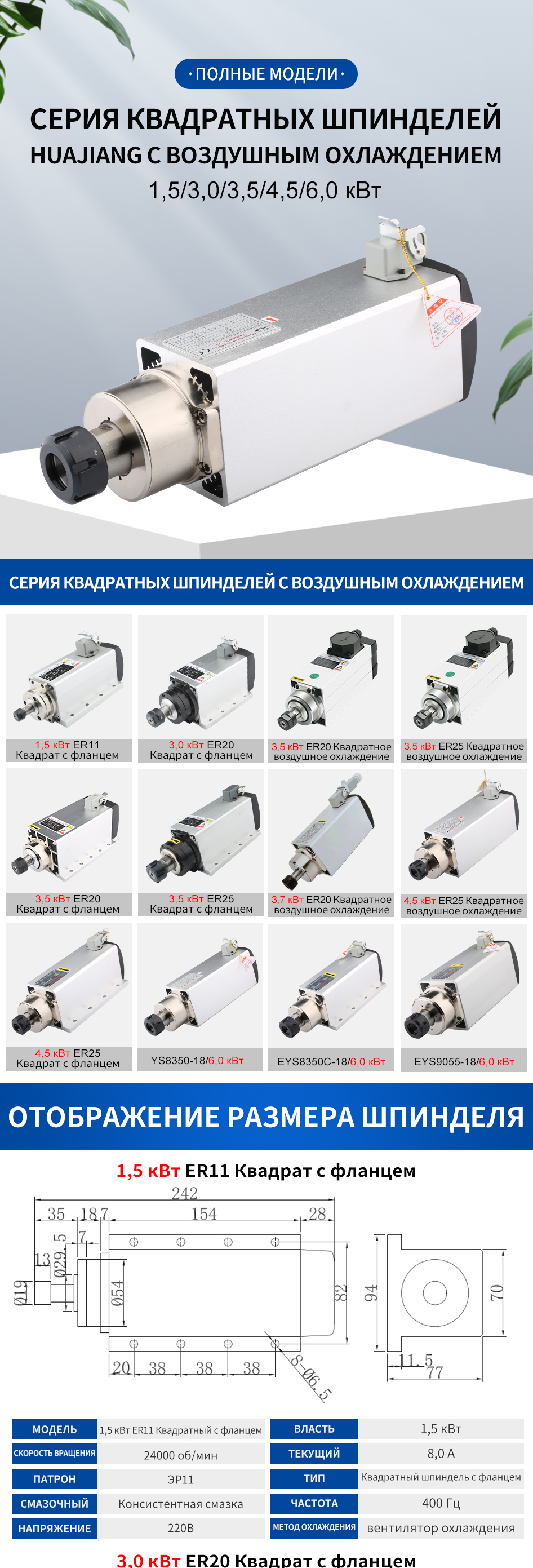 Серия квадратного шпинделя Huajiang с воздушным охлаждением 1,5–6,0 кВт