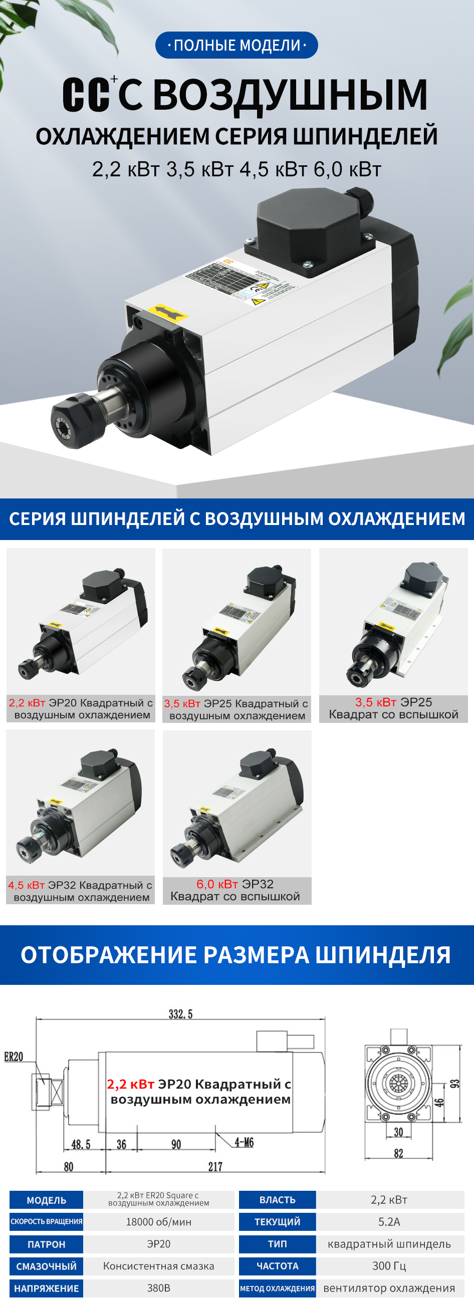 Чанчуань квадратный шпиндель с воздушным охлаждением серии 2,2 кВт-6,0 кВт