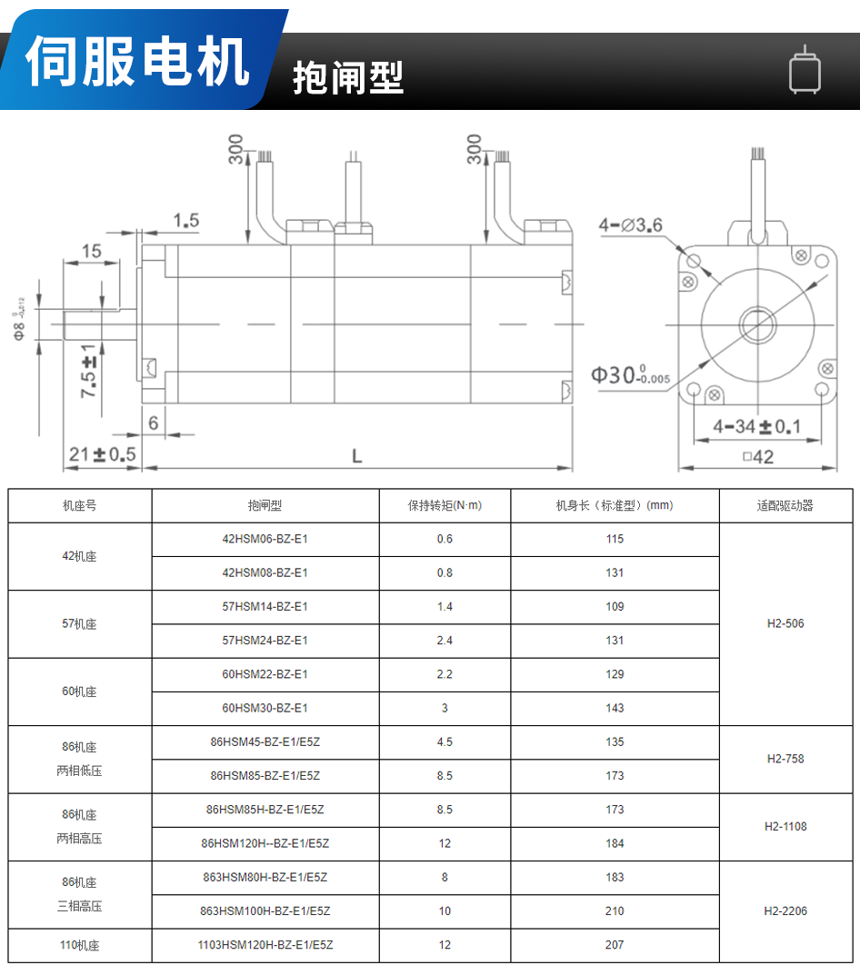 雷赛伺服电机系列 带键槽/光轴/抱闸
