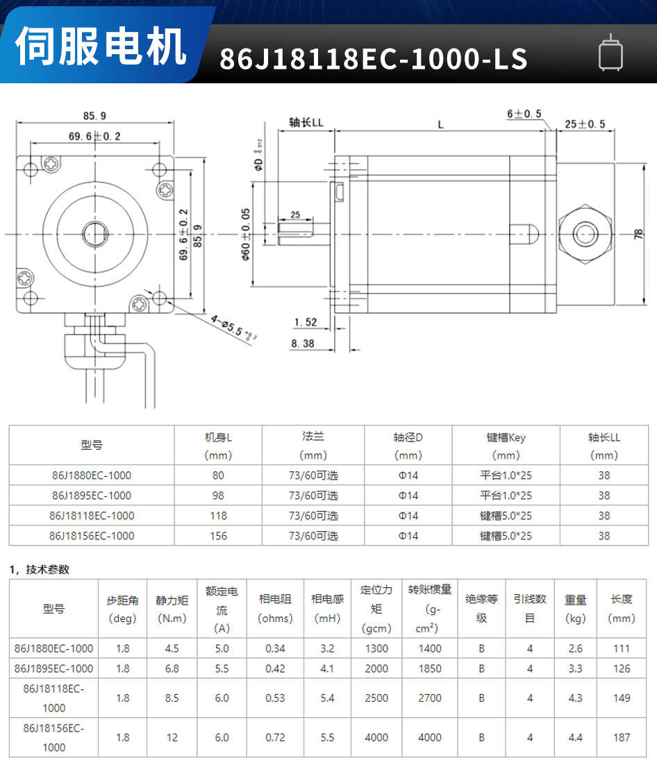 雷赛伺服电机系列 带键槽/光轴/抱闸